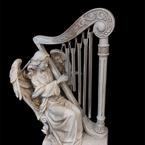 Chimes lightly sing when you move them. Hand painted with outstanding detail. Stands 10 inches tall.