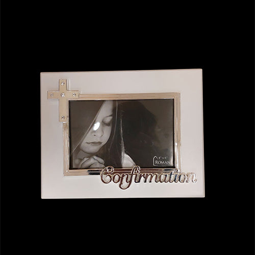 Holds a 4x6 inch photo. Rhinestone accents on cross. Frame itself is 10x7 inches.