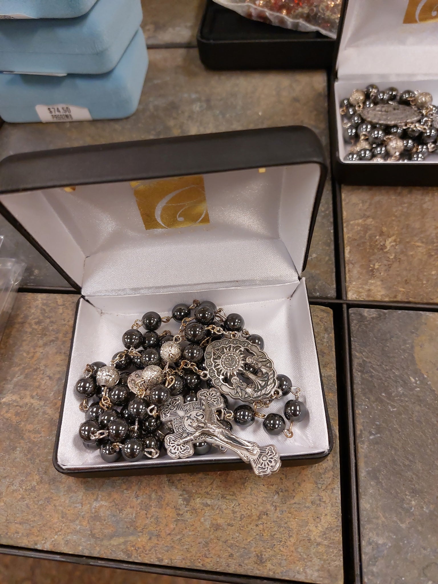 HEMATITE OXIDIZED SILVER HERITAGE ADORATION ROSARY.