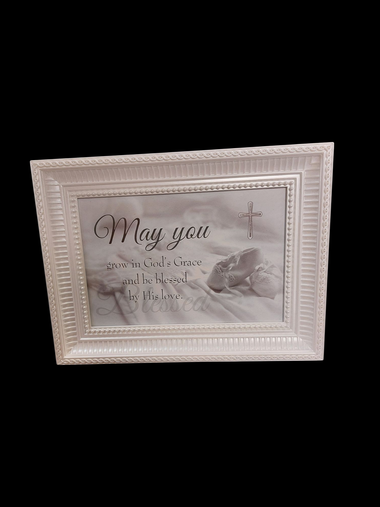 This beautiful and meaningful music box can be enjoyed by your little one now and for years to come! Your child can listen to Brahms Lullaby”, as box winds up. Stores small items. The insert can be changed out to a different picture later. The perfect gift!